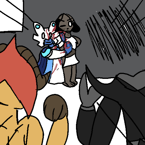 Alex scans him, scanning him for any malicious intent, but then inevitably stops and puts his attention back to Umbra; Posini looks at me. Attempting to muster a smile but instead giving a wide grin.