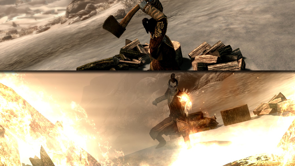 I could feel it wobble back out of control when I slacked in my focus. I wiped sweat from my brow and it singed me and burned the bottom of my sleeve to soot instantly. I found that I didn’t have to focus on turning the magicka to flames. It was burning as soon as it reached the surface of my skin. I had to focus to keep the fire from forming inside my own skin after that. That’s how it happened, how my father blew him