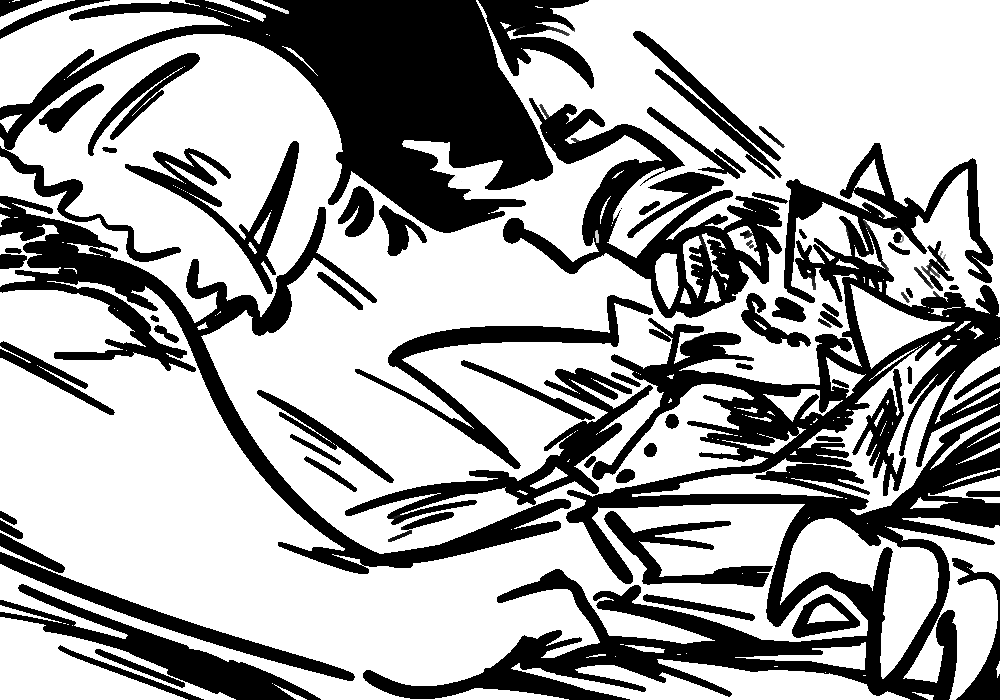"I heard you the first time." You walked closer, at an even pace, to savor the moment.