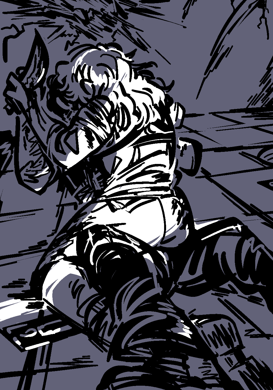 Haze is not easy. No matter who tops. She'll carve into you her demands, sometimes for hours, then cry about it right after. Not a good cry either. Her breakdowns are one of the only things you find irritating about Haze. Not when she chops you apart or stabs you repeatedly. No. Haze is afraid of feeling good and what it means coming from you. Ashamed of it. So ashamed that she'll spiral into a sobbing pitiful mess of prayer that slaps any attempts at comfort away. As if her enjoyment of sinking her sword into you is any better than her dick. As if her guilt after will matter....