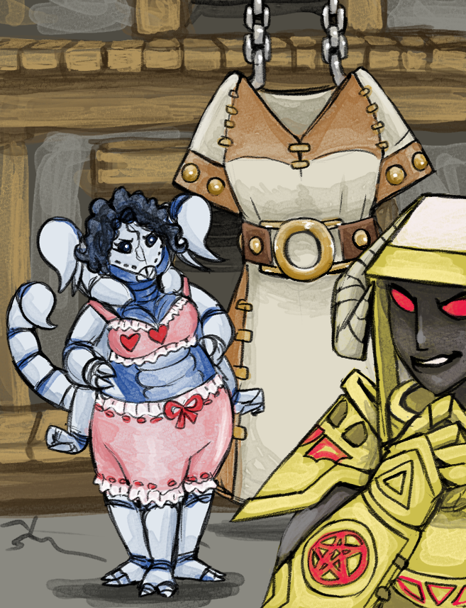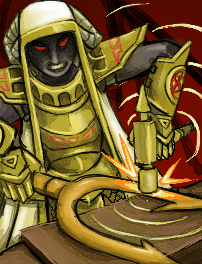 Third Acolyte is Oragatt Ruingarth, she works the forge normally but his been given a mission to prove her worth, she has made good progress.