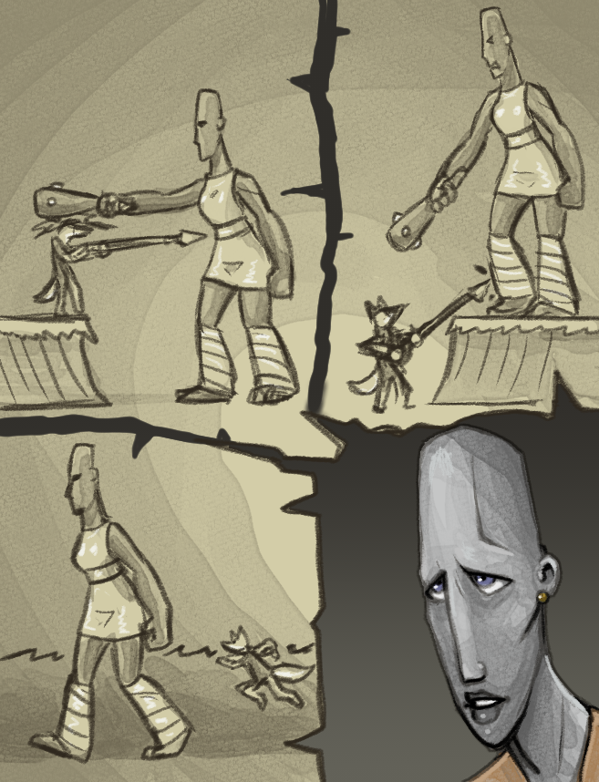 Oragatt can't let Herocea's whims risk victory, most importantly Oragatt must focus on her own strengths " night is of little use to you, but it is of great use to me, in fact your distraction will make it even easier for me to operate." additionally she adds "your concerns are noted but the javelins I've crafted for you should more than make up for being on high ground."