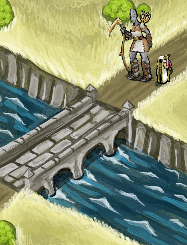 "Hmmm very well, set up some cover with those stones" Oragatt is not sure she can sabotage the bridge conventionally without a few days work or explosives.