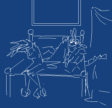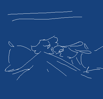 Lune shifts down, underneath the blanket, to Poppy's waist. Poppy spreads her legs knowingly, giving Lune some more room. Lune's voice is muffled by the cover.