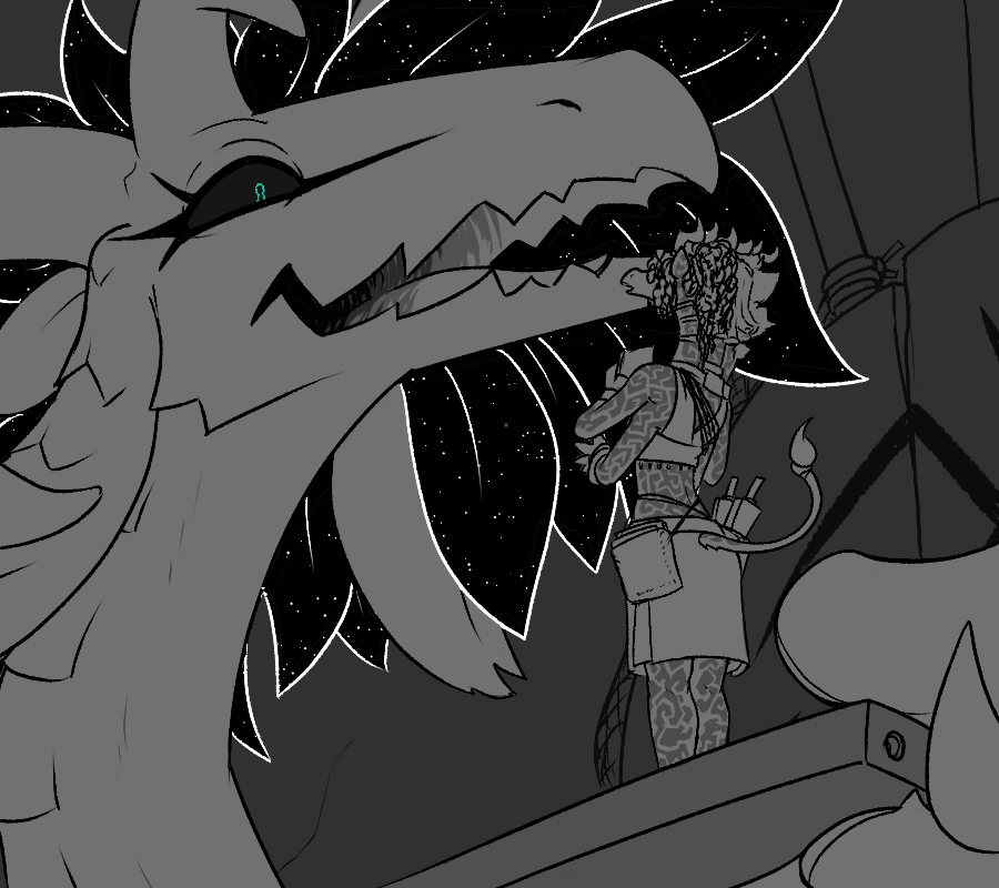 :aphannitsm:“Hmm. I’m getting stuck in the idea of stealing it again, I could trade with any of the mortal targets in some way. Maybe. But what with? Barter food for food? Sex might take some doing... Knowledge? Something else? Gh. Even though trade is one of my specialities, I’d need to figure out my approach on the ground. Mortals tend to get suspicious of demons appearing before them with a grand proposal. For some reason.”