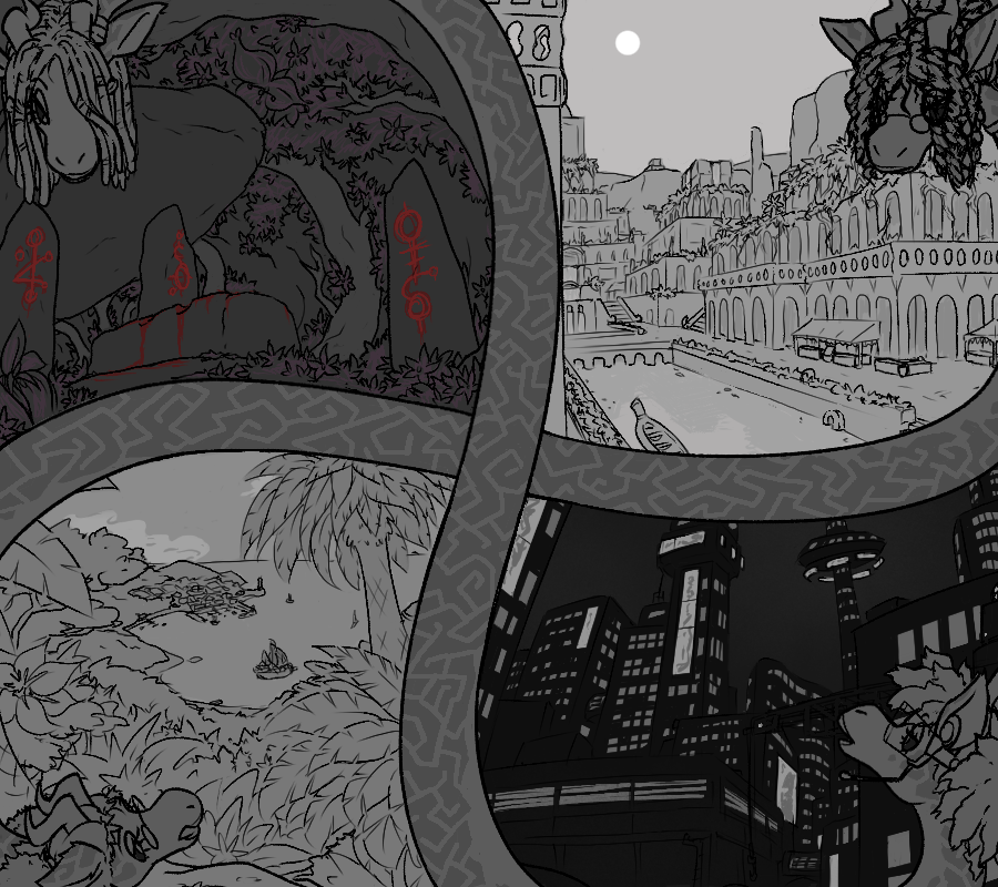 :hokaokosm:”The ecosystem it contains is aided by a thing that fits to what you seek, Princess. A bag that still spills all the fruits of the jungle that once was, covered by the sands he strives to sweep away again. If it is taken from him, he will have to use other, more prosaic methods to keep his laboratories fed, and that might force him to restrain its depredations just a little more.”