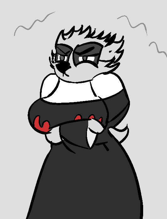 “This fox spirit,” the badger-woman says, baring her teeth, “Fears a seal at the first sight of authority? Surely she is a wicked one.” She bares her teeth. “She has clearly enthralled this young lady into wearing… such indecent attire.”