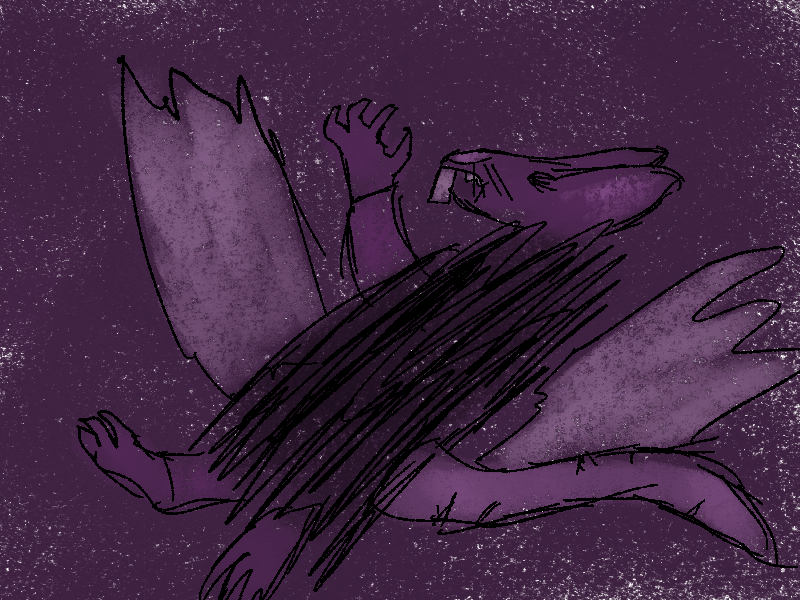 But your focus is on the bat, who swings its head back and forth trying to take in the commotion, before throwing its head high to let out a piercing scream. A scream which is cut off as you slam straight into it. The blade is ripped from your grip as it sinks deep into the monster's shoulder. The two of you roll into a grapple, clawing and snapping at each other's faces.