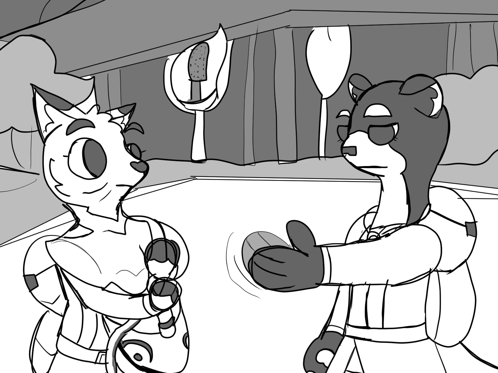 “Well then.” He responds then looking towards the other crowds who are reverling within the excitement of the tavern, there’s a mouse to the far left of the stage, playing an ditty on their lute, then back to me juxtaposed perfectly, I hope he wonders about if I got his insulation for the rest of his life.