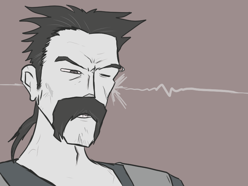 He manages to dredge up some extra impassive meanness to add to his stare.