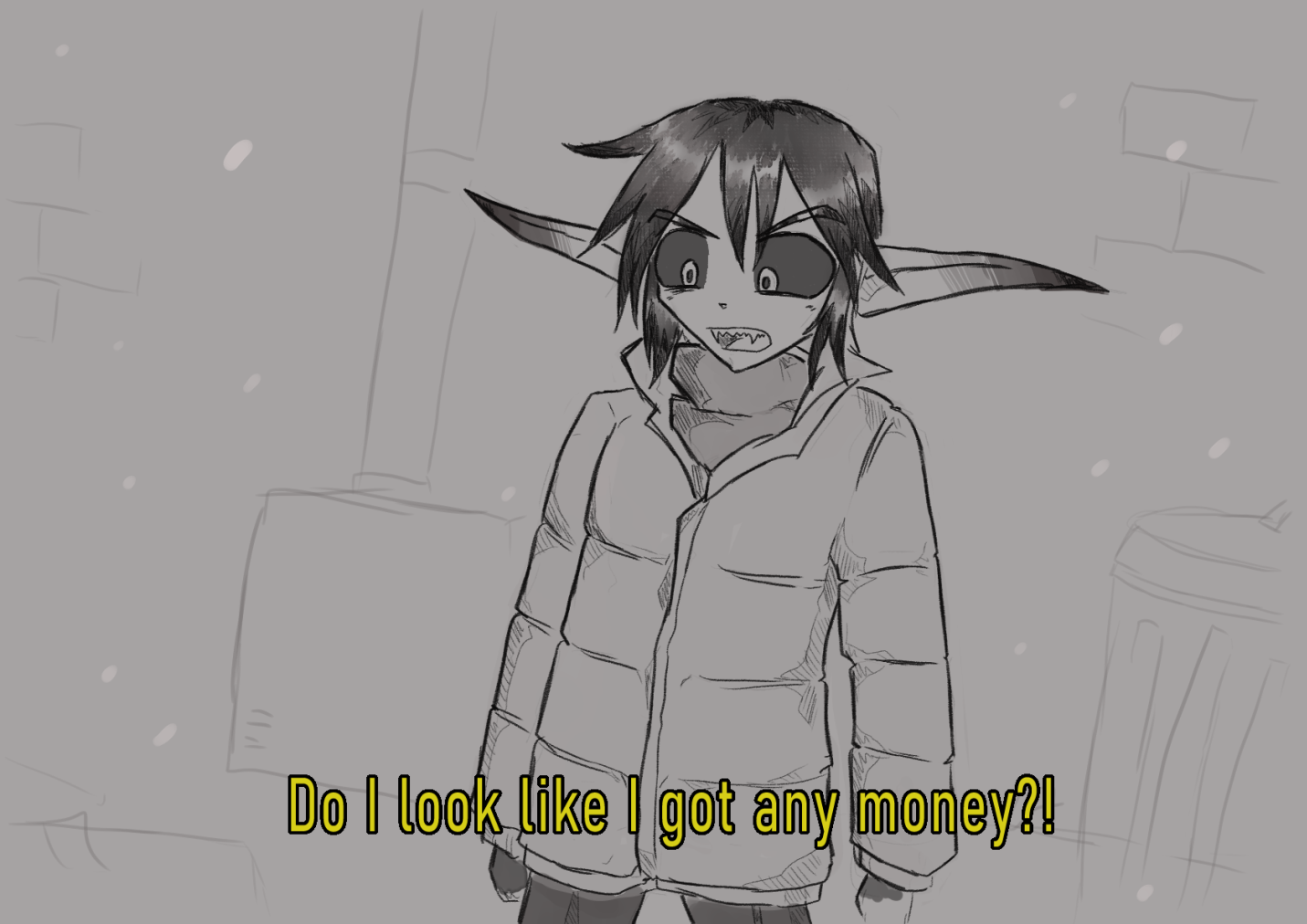 "Go home to your mommy and bring back some real money. Twenty gold doesn't get someone like you a seat here. It's a flashy joint, see? For flash people."