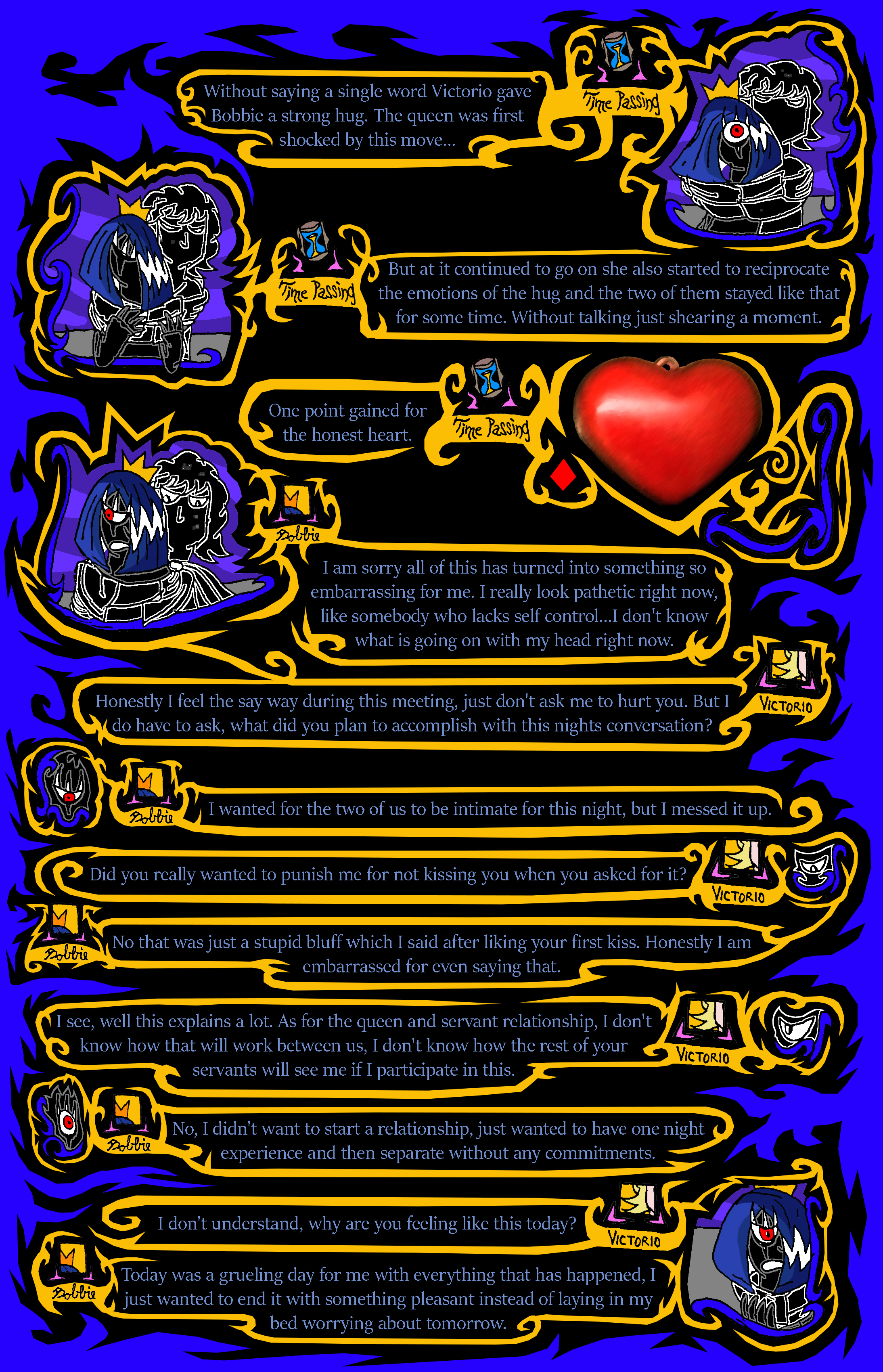 For the second question, it is about the side quest. If you agree to go to the party when the second chapter is finished the side quest will immediately start. As for those who participated in the discussion thread I have something in store for you.