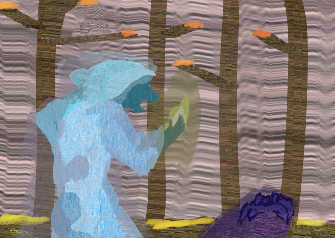 Me. The trees. The ray. The paint. The faint trail of that thing. A terrible gold streak of anger on Fionnuir.