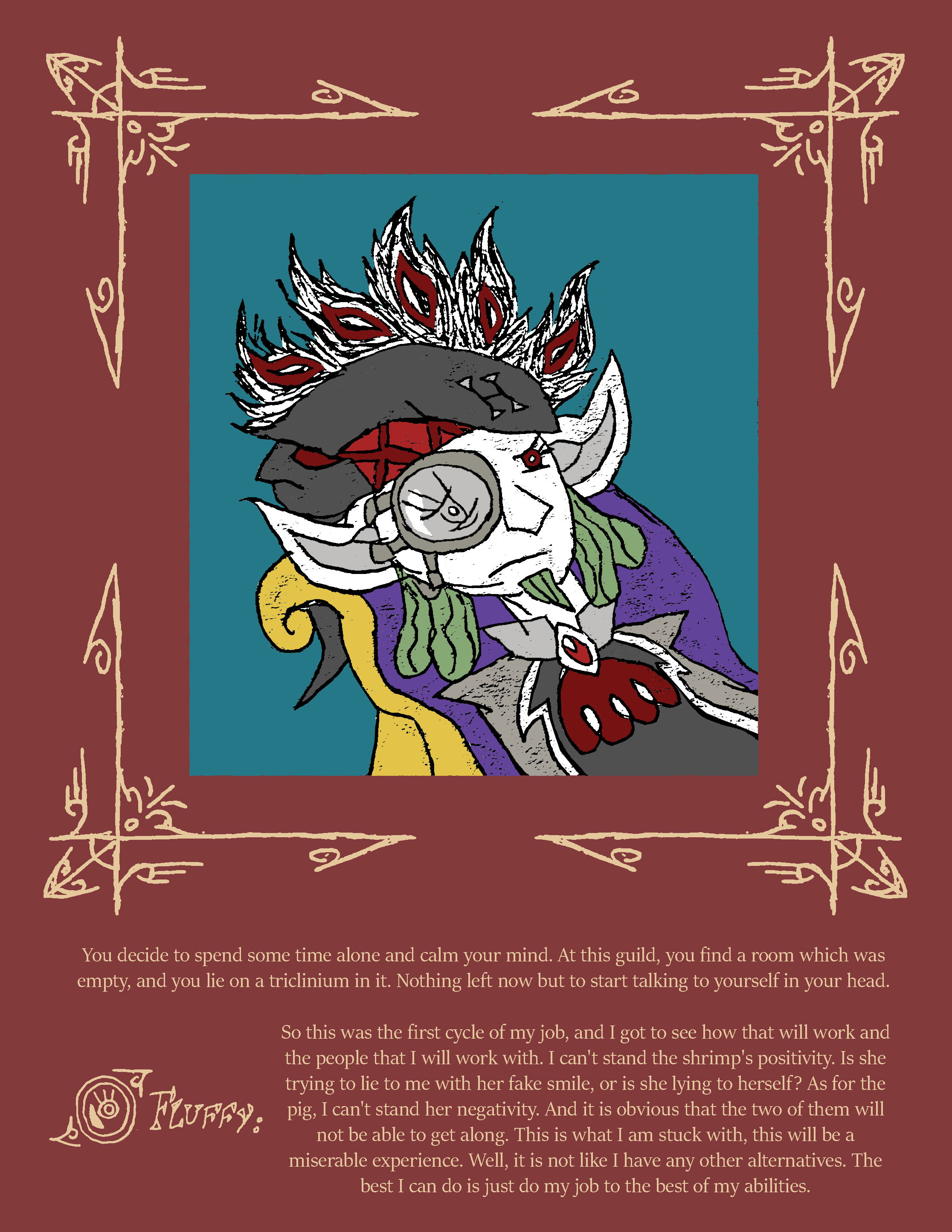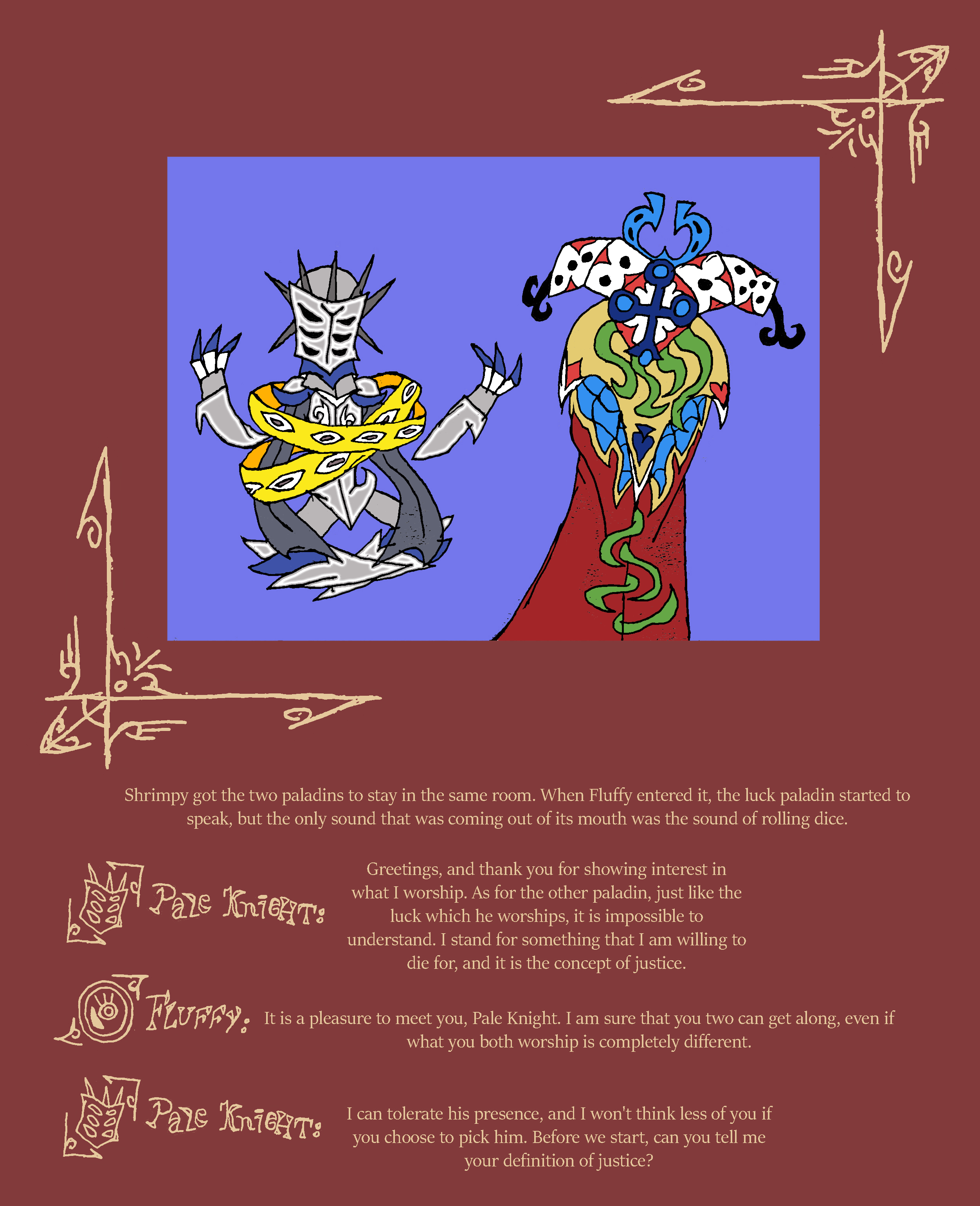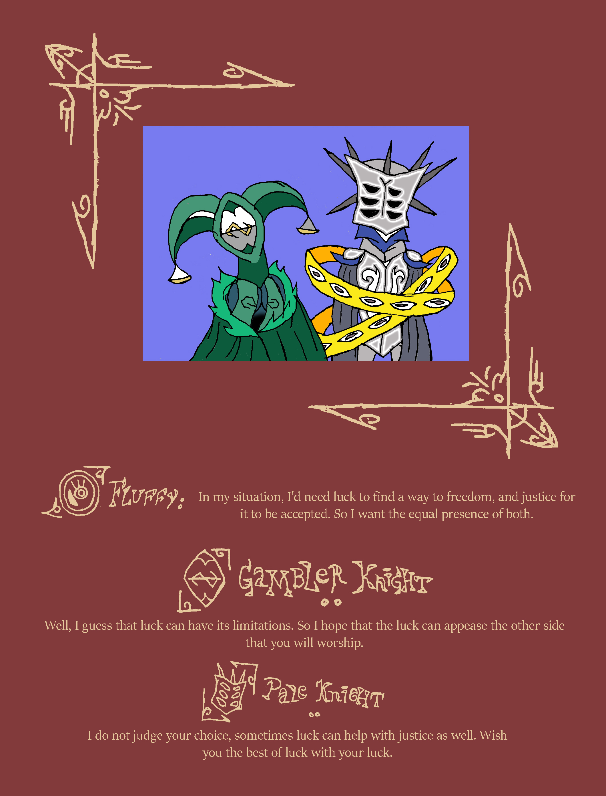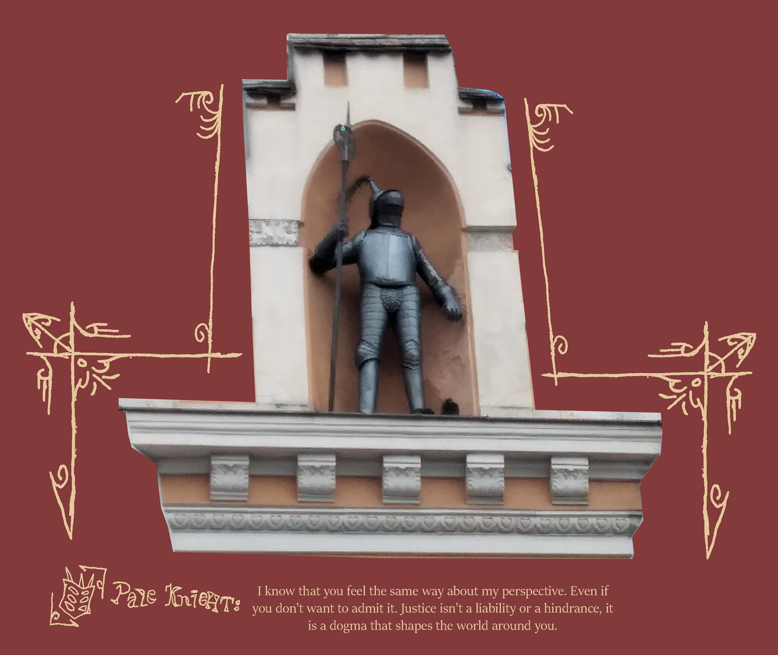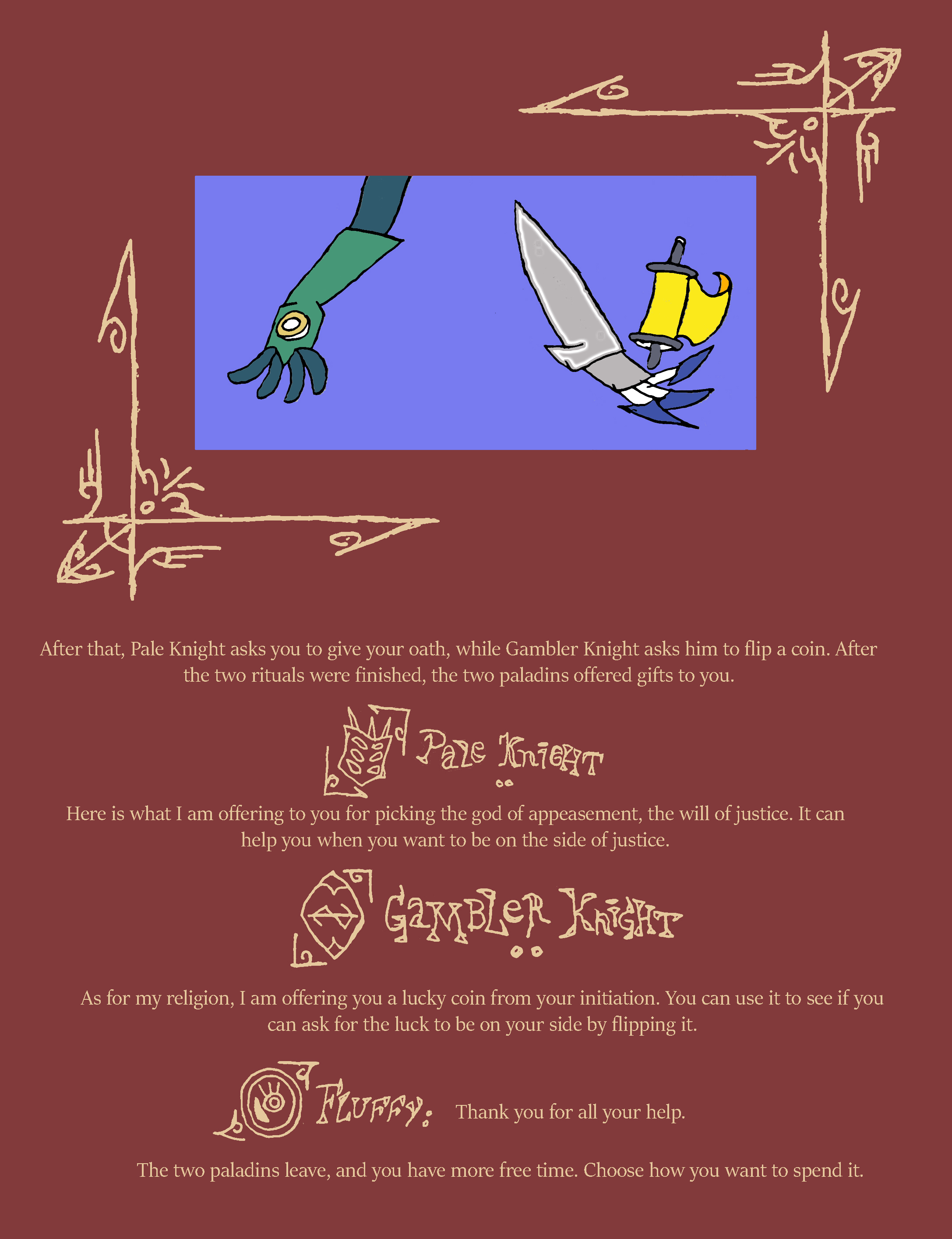 Ballerina Knight: excellent job. Though I wonder, what was her side of the story with what happened with the imprisoned knight and the merchants? She probably witnessed all that. Also, did she find out why that eye was observing the village? I suggest giving her bonus pay for taking care of both jobs.
