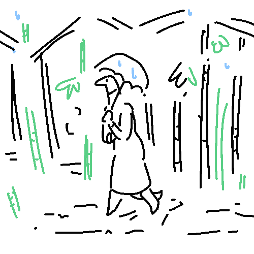 I take my umbrella and my basket and we head into the downpour. I don’t have to walk for long before I arrive at Minnie’s house, where the rabbit is mercifully nowhere in sight. The man of the house should be home–how do I ask him about Minnie without sounding too suspicious?