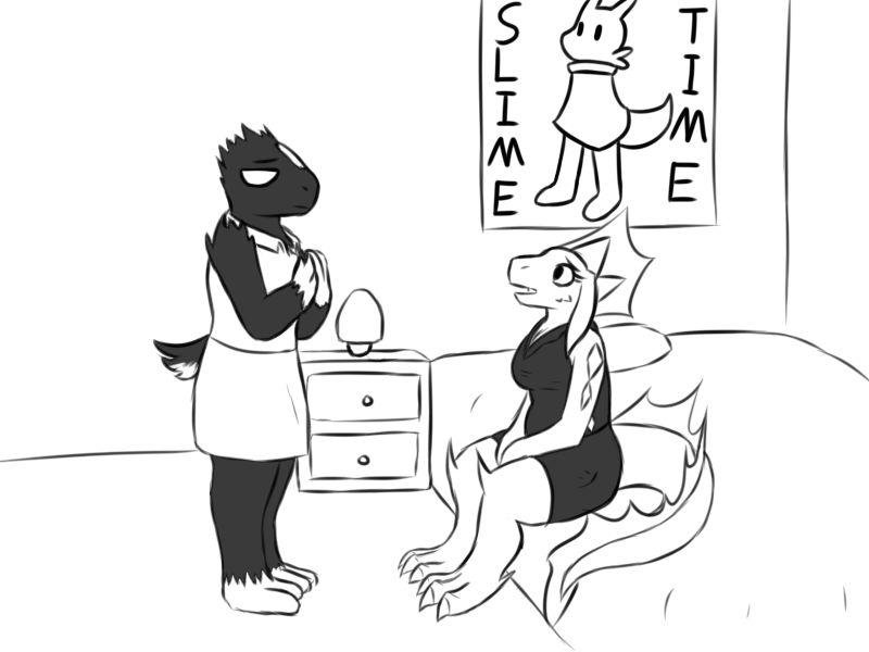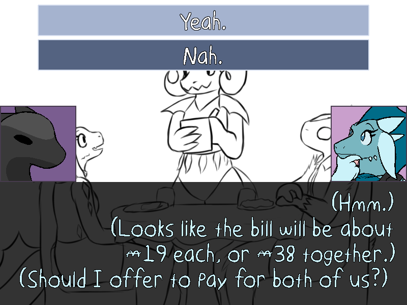 "Guess we're naked together again, heh," you say. "Can't argue with the change in context, though."