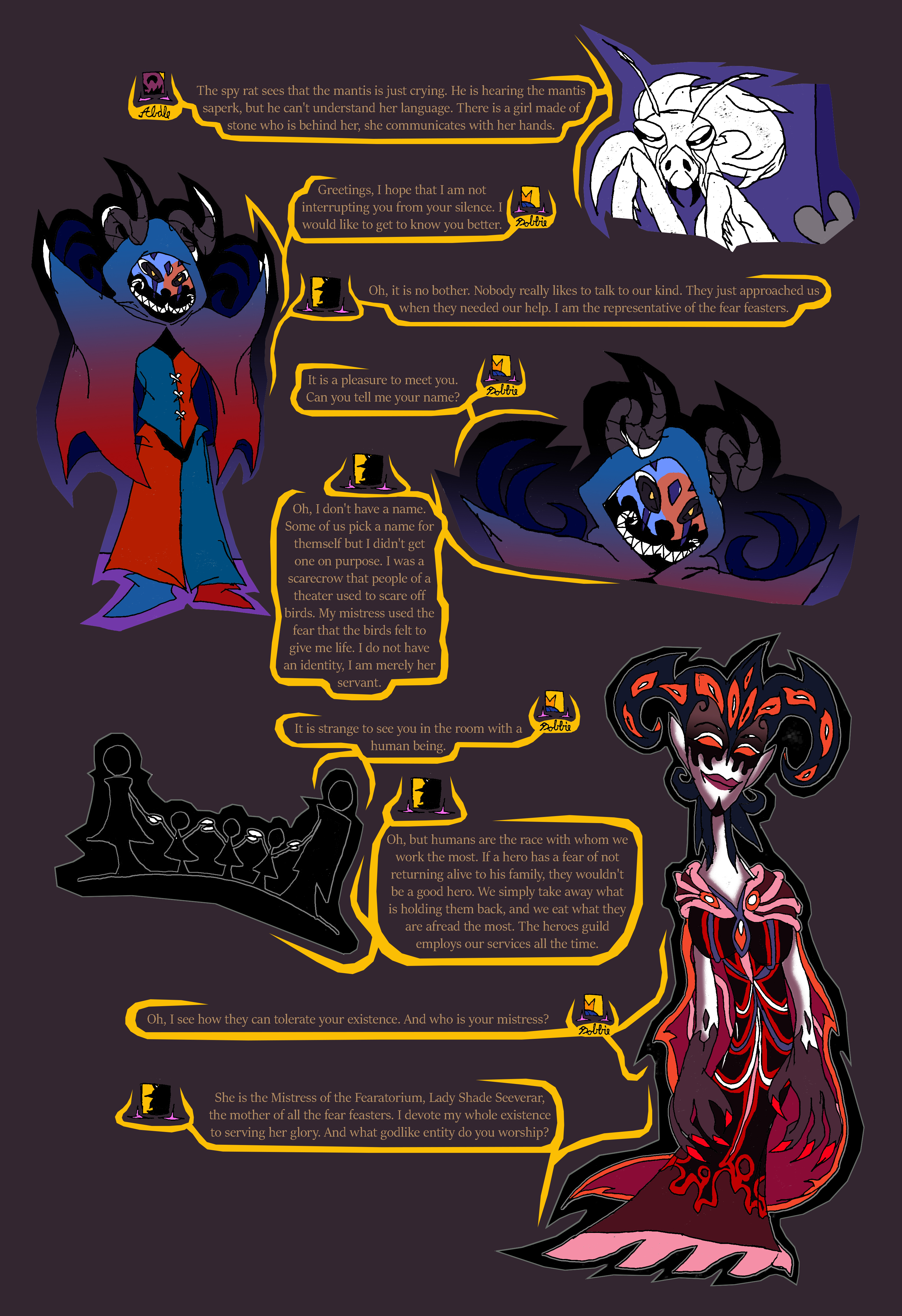 d (kinda A). Aren't we technically in a way working with a dream god in a way? speaking of which, We recently encountered a nightmare the other night through them. What are fear feaster's views on nightmares? do they eat nightmares?