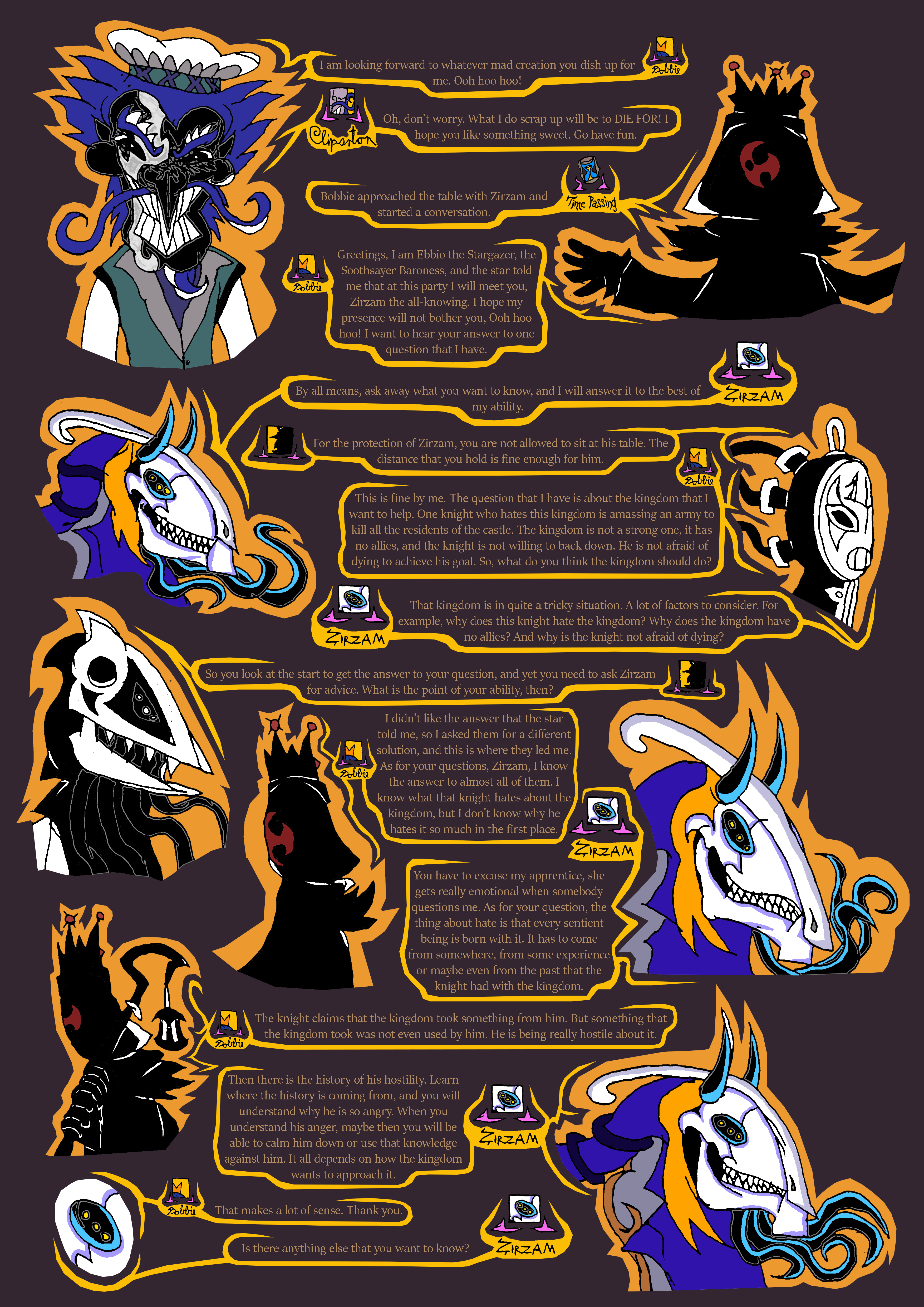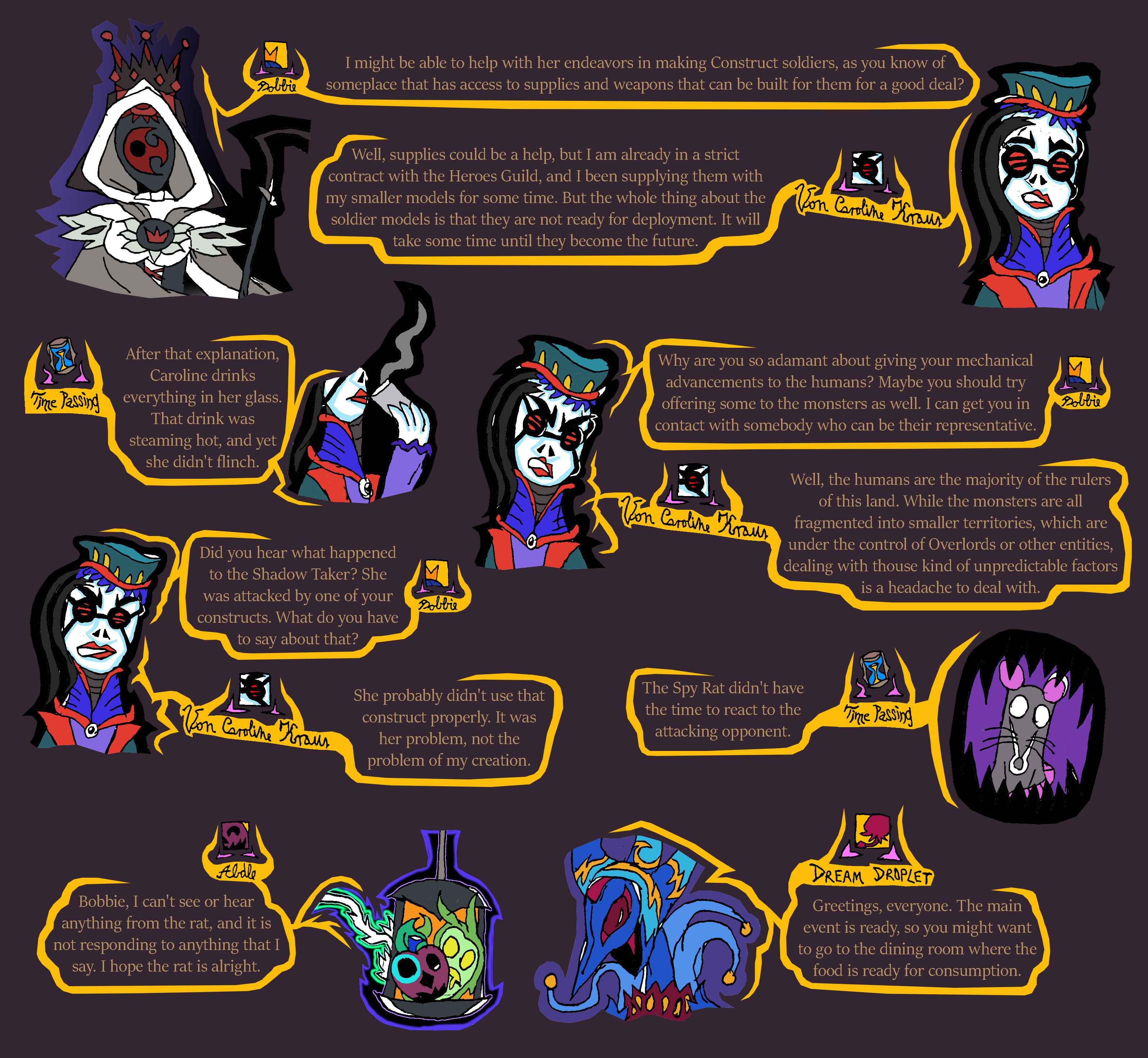 lastly, that was the second time today that spy rat got caught. We need to have a serious talk with Ratislav about training his rat spies, otherwise they could get caught and eaten. With that in mind, I think we shouldn't let spy rat back out right away until after Maya Din is done talking with us, and when the performance begins since that is starting soon. People will be distracted during that time to notice the rat.