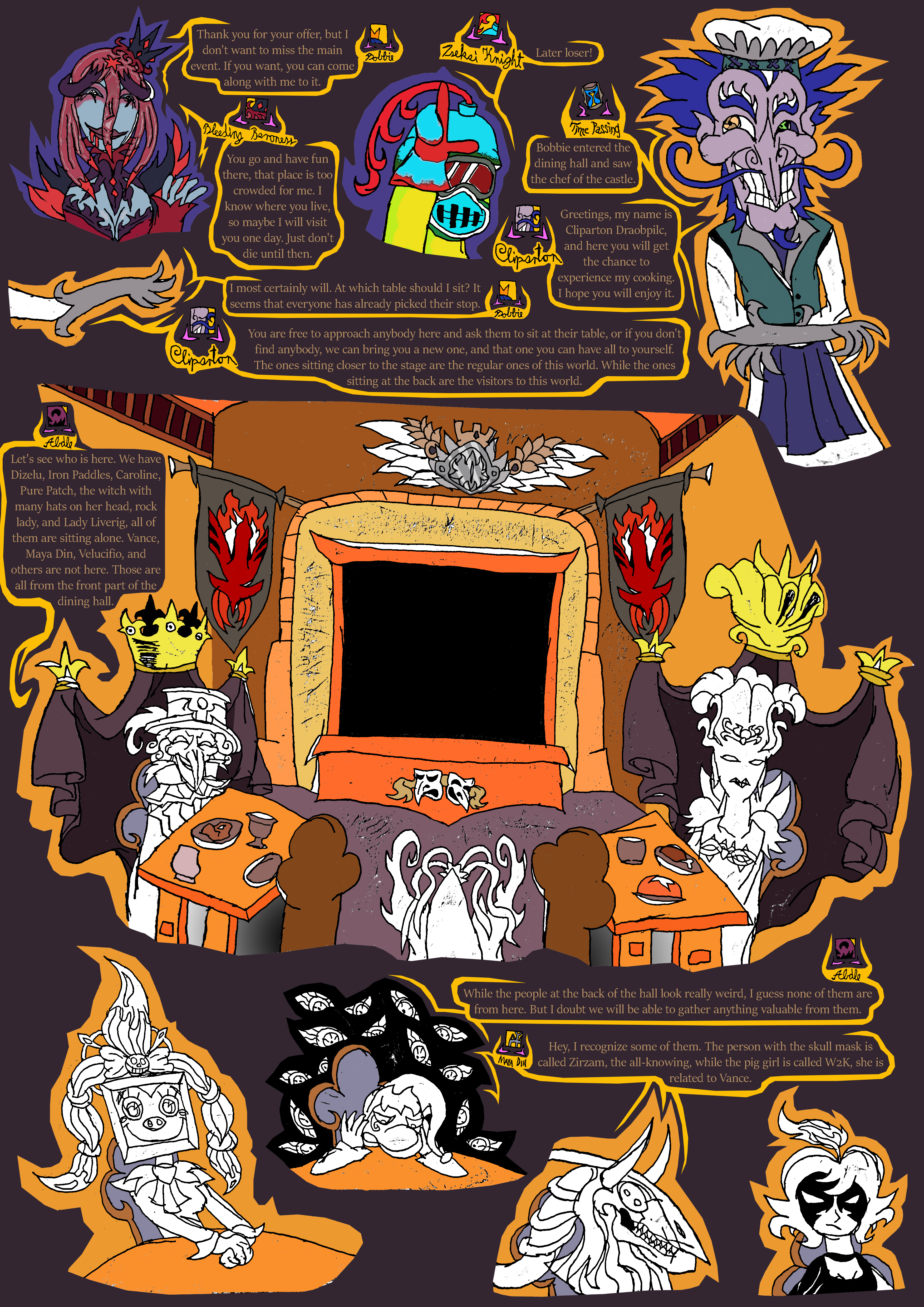 guy in green mask: Dizelu's the name. appreciated those paintings. Is looking for leader of the Banisters with the man in top hat and mask, Velucifio. Try not to look under Dizelu's mask, you'll die seeing his real face.