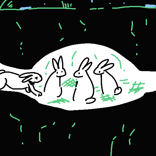 The chameleon never appears. The sky darkens and I use the light of the stars to find my way to the burrow. I can hear Grass, Root, and Sky fucking in the main den.