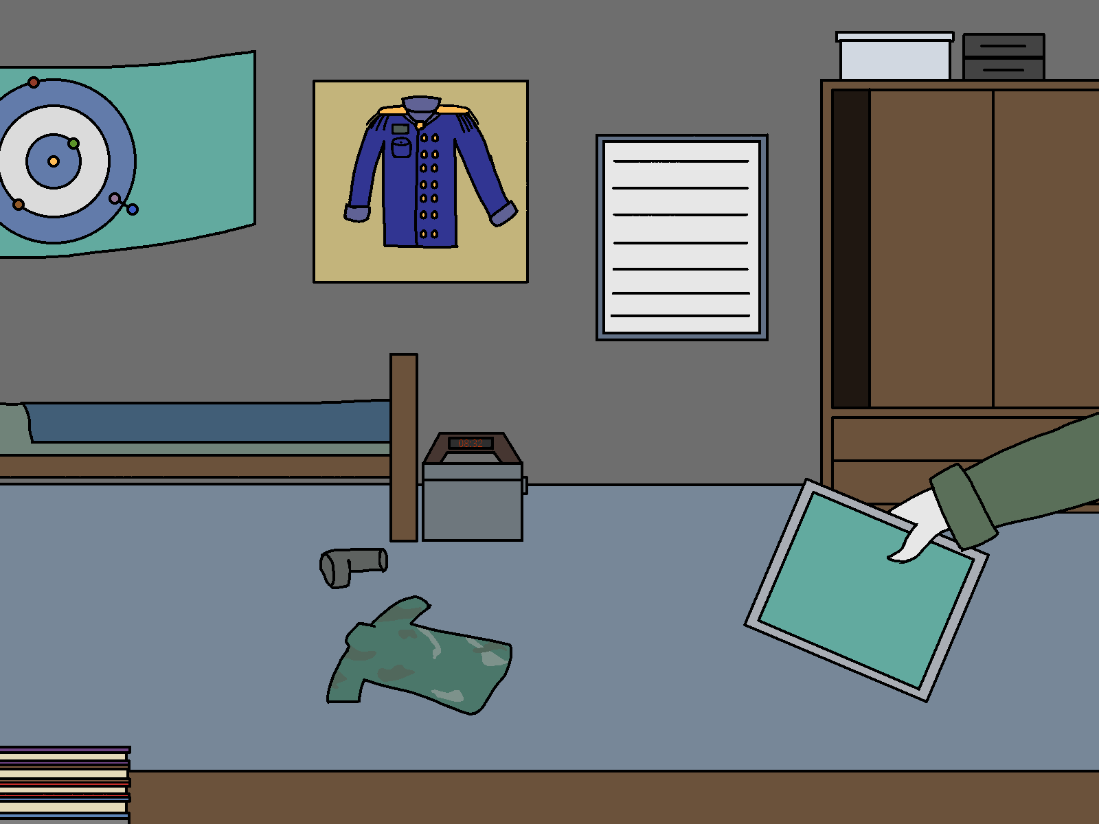 “Hmmm… Well, if there is something I learnt of our friend Delma, is that you should always keep an eye, and ear, open- There have been a lot of interesting ships moving in system, even more than there usually are. Maybe one of them seems familiar?” He says, pointing at my pad pocket, under my overcoat. “Oh! And before I forget! If nothing else, you should look into your PAD, particularly your profile.”