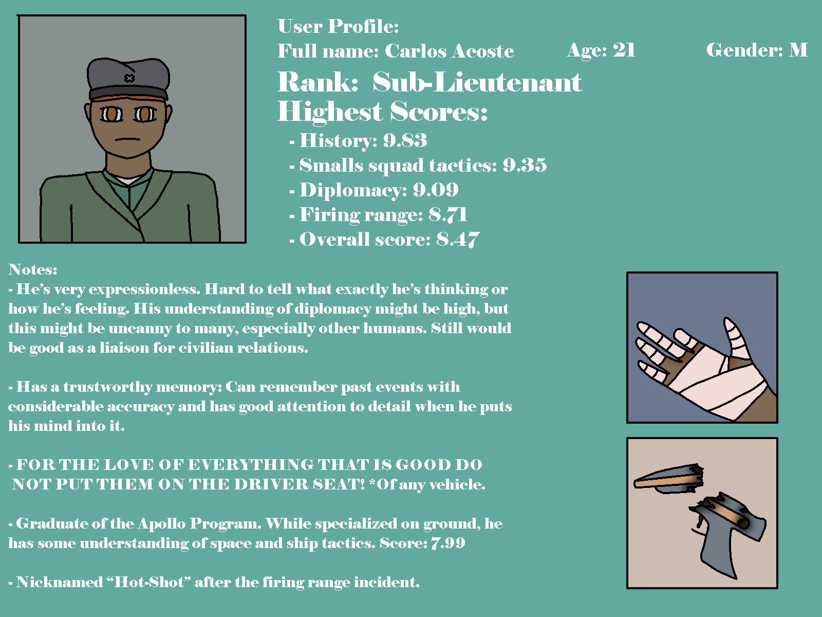 I’m Carlos Acoste… Son of General Steven Acoste. I’m 21, soon to be 22 years old, I’m native and currently living on New Stockholm-3, within the Azure Alliance.