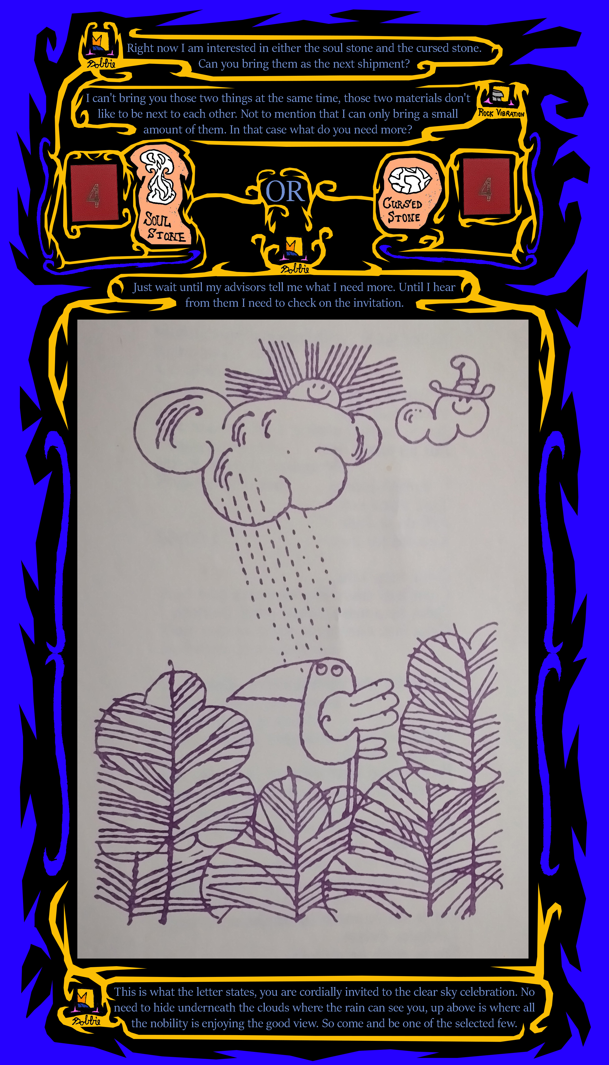 For the second question, it is about the side quest. If you agree to go to the party when the second chapter is finished the side quest will immediately start. As for those who participated in the discussion thread I have something in store for you.