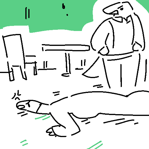* You were so horrified, which stunned you long enough for Anthony to come back. He was infuriated, then he got a nasty grin on his face, and said something about 'de-thumbing his new rabbit'. You told him you wouldn't talk, but he grabbed your throat with one hand and then aimed the knife at your hands. (Stab the floor with a cleaver, around where Anthony would have it hoisted up.)