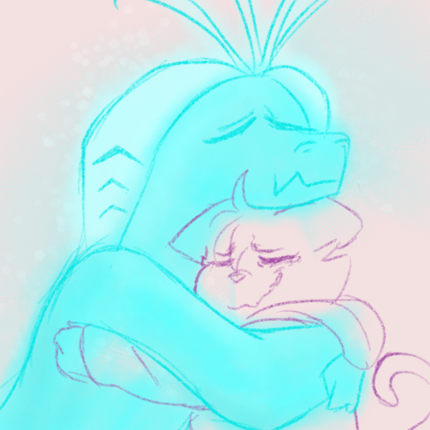 Nothing cures the stress of being thrown onto a planet full of problems like one of Tempest's patented Big Soft Birb Hugs™! I don't think Vi.Si.Mi was expecting to be suddenly buried in soft birb... but I'm sure they won't mind after the shock subsides!