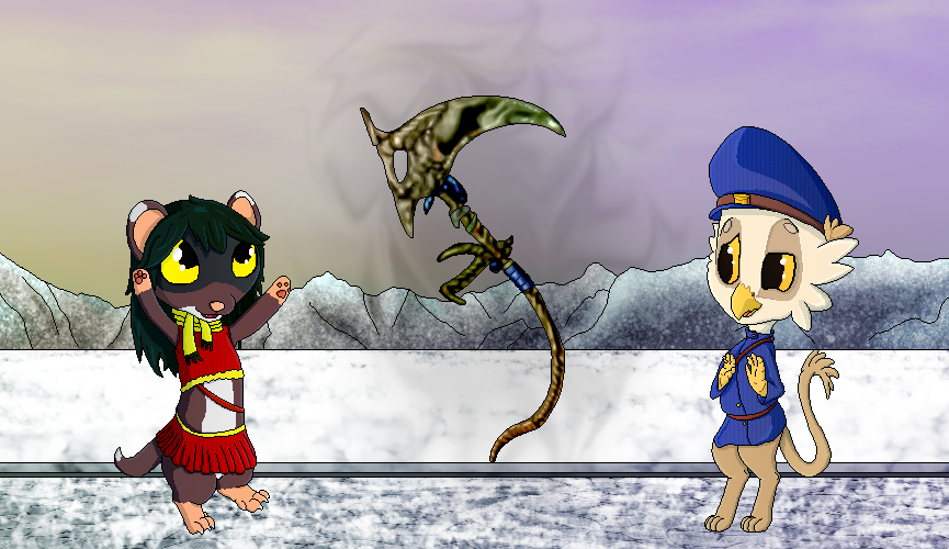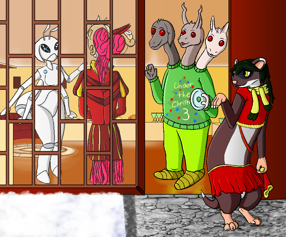 From beside the punch bowl a pair of rodents watch the proceedings with mixed amusement and confusion. "Lisel, you said this holiday would be a break from our troubles." Surrep crosses her arms, one finger tapping an annoyed tattoo. "And yet we find ourselves just as trapped in a murder house, caught in a frozen waste, as we were before."