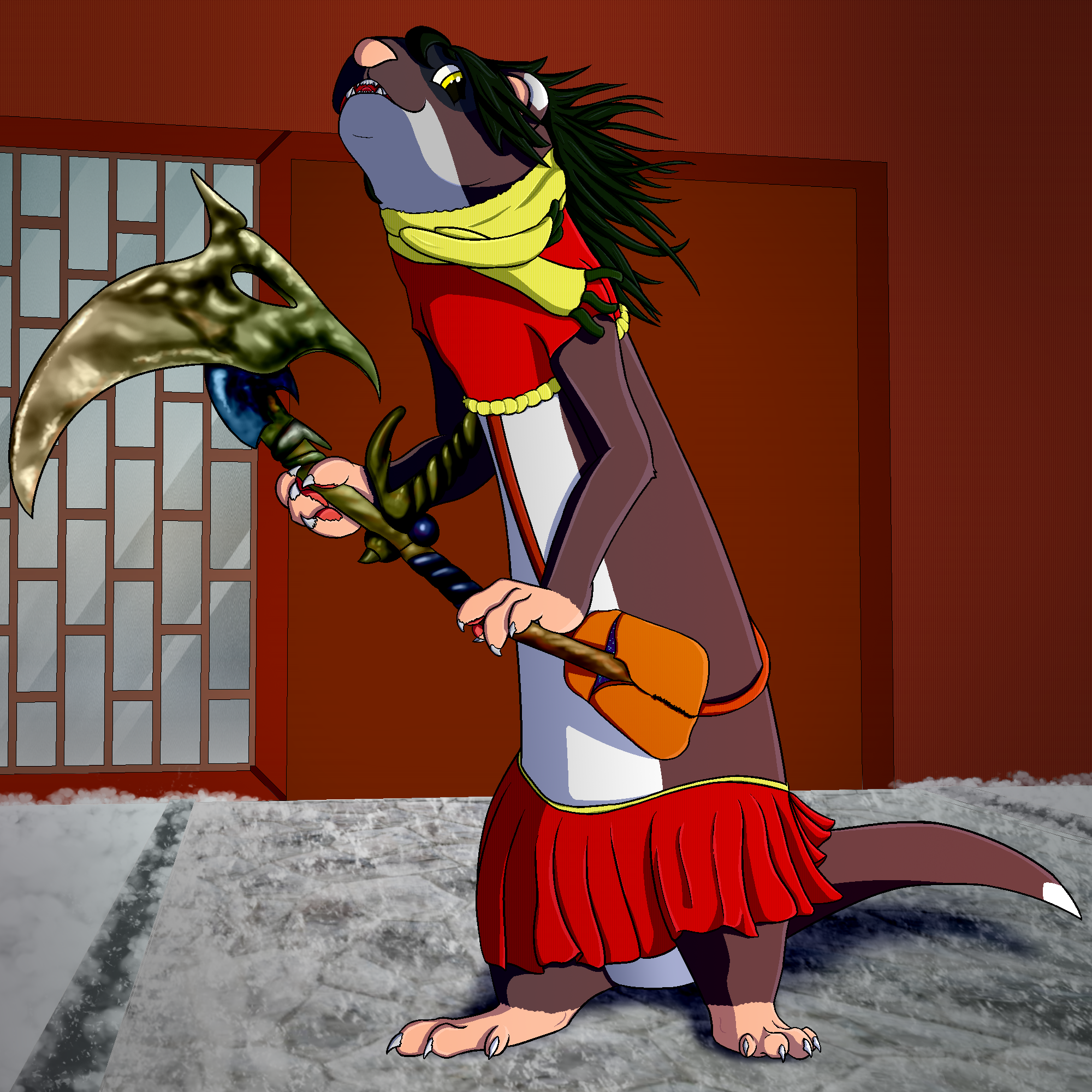 Here it is! Tebimar’s Scythe! From one of my favorite games! I know you can’t really use weapons, something about being a postal worker? But that’s okay! I had someone named Rizolvir imbue it with some regeneration, so as long as you’re holding it in some way, it should heal your wounds. It’s uh… pretty slow though.