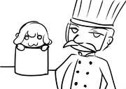 Cooks food for the dungeon staff. Basically in charge of staff morale. Upgrading him improves the quality of food he can make, and lets him throw bigger celebrations to improve morale. Known as the Cook before upgrading.