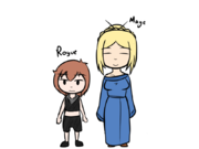 The Warrior's party members for her second and third attempts at the dungeon. The Mage is much more experienced than the Rogue, and seems to have a soft spot for him.
