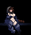Red Widow doing... something, behind a black box. (NSFW) Imgur album here by Sombermann