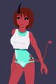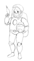 An Space Scout from the Fae sector of the galaxy who intended to "farm" Slimecrown's golems for Water runes to aid her people. She's not fat, it's suit insulation. She repaired Ruth's bat with Space Metal after accidentally breaking it. The suit has an onboard intelligence that can fight on when the wearer is incapacitated.