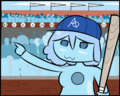 Another basic slime, Ruth picked up a bat during her first fight and hasn't put it down since. Where did she even get one of those? Her bat's unusually powerful due to a glitch where it's treated as a physics object and not a weapon.