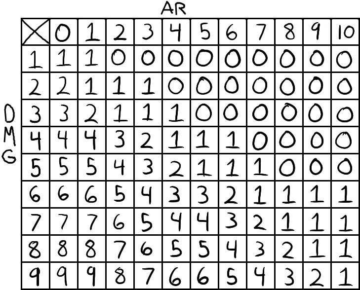 | current | 01:25, 14 June 2013 | 729 × 588 (101 KB) | Squeegy (talk | contribs) | Updated version of the armor chart to fix the gap in efficacy between level 1 and 2. | |